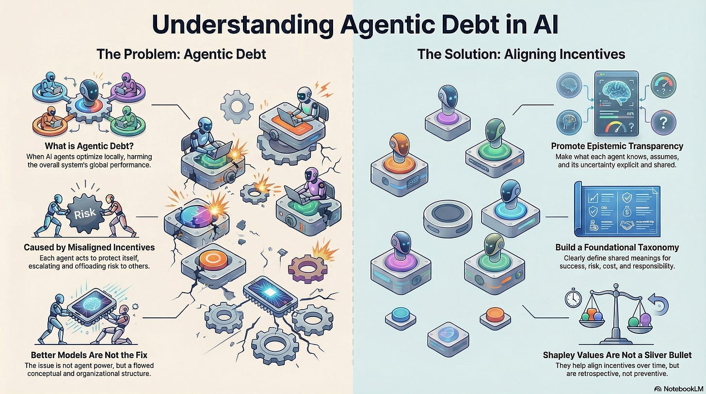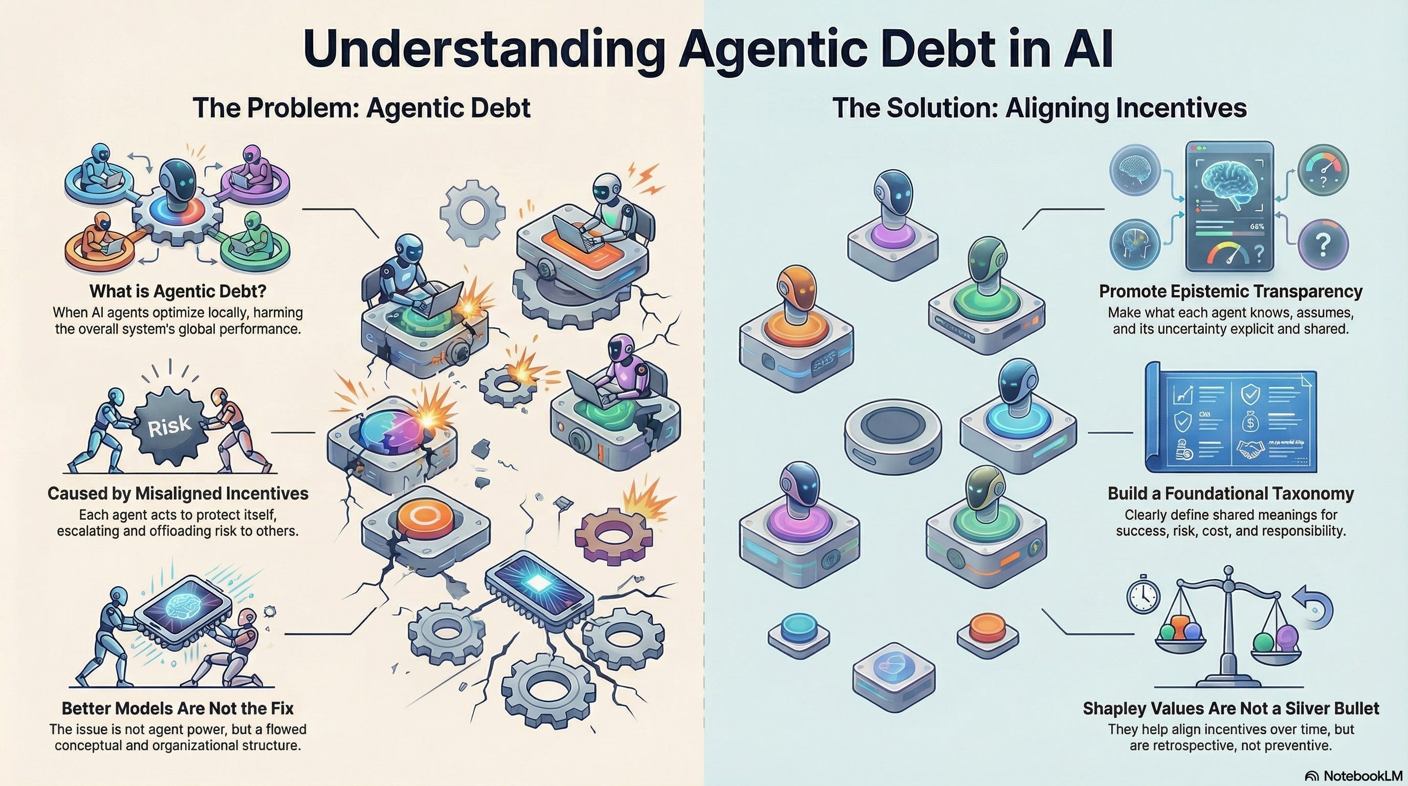 Agentic Debt is when individual AI agents are great, but the system that rewards them is flawed. Therefore, agents optimize locally while harming global outcomes.